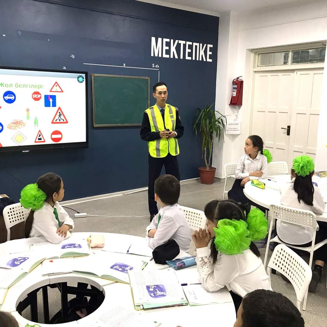 Шымкент ҚПД Тұран АПБ ЖПҚБ ЮПБ инспекторы полиция лейтенанты А.Жолшыбек акция барысында мектеп оқушыларына «Балалардың жолдағы қауіпсіздігі» тақырыбында жолдағы қауіпсіздік ережелерімен таныстырып, түсіндірме жұмыстарын жүргізді.